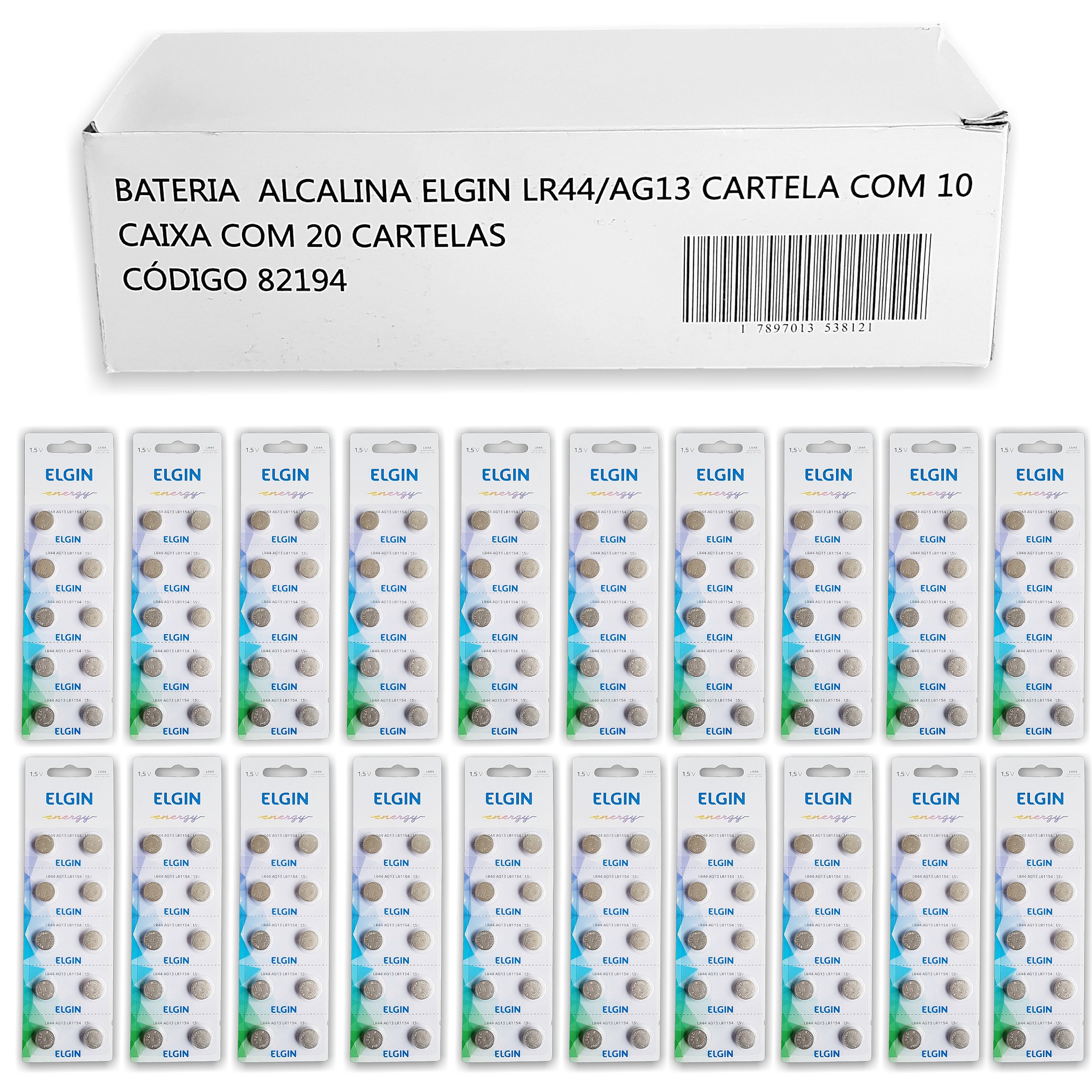200 Pilhas Baterias Lr44 A76 Ag13 Alcalina Elgin 20 Cartelas AG13 LR1154